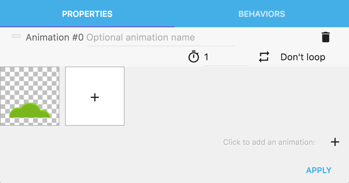 Por ejemplo, cree un objeto Sprite, agregue una animación y agregue la imagenbush: