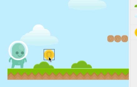 A continuación, puede poner varias monedas en el nivel. Como necesitarás varias monedas, es una buena idea usar la función "arrastrar y clonar" del editor de escenas: selecciona una moneda, sigue presionando Ctrl (o Cmd en macOS) y arrastra la moneda. Esto lo duplicará.