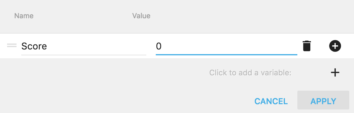 Puede hacer clic en el botón "+" para agregar una variable e ingresar "Puntuación" como su nombre: