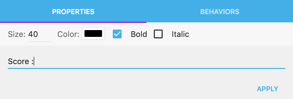 Podemos especificar un texto escribiéndolo entre comillas (como esto: "Hello World"). Pero también podemos usar algo llamado expresiones. Una expresión es una función que está devolviendo un cierto valor. En este caso, necesitamos el valor de la variable Puntuación y queremos usar ese valor para actualizar el contenido del objeto Texto. Las expresiones son un tema más avanzado, por lo que no lo profundizaremos por ahora.