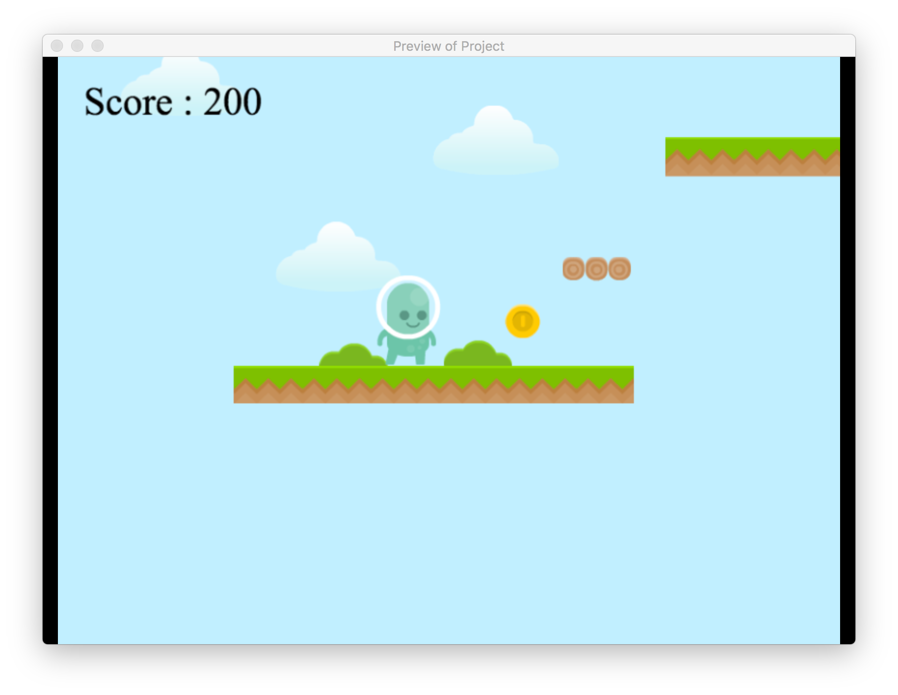 Puedes previsualizar el juego, ver que la puntuación se muestra y se actualiza cuando recojas una moneda.