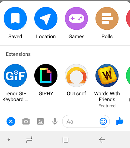 Sur votre téléphone, ouvrez Facebook Messenger. Allez à une conversation, cliquez sur le bouton + et choisissez Jeux :