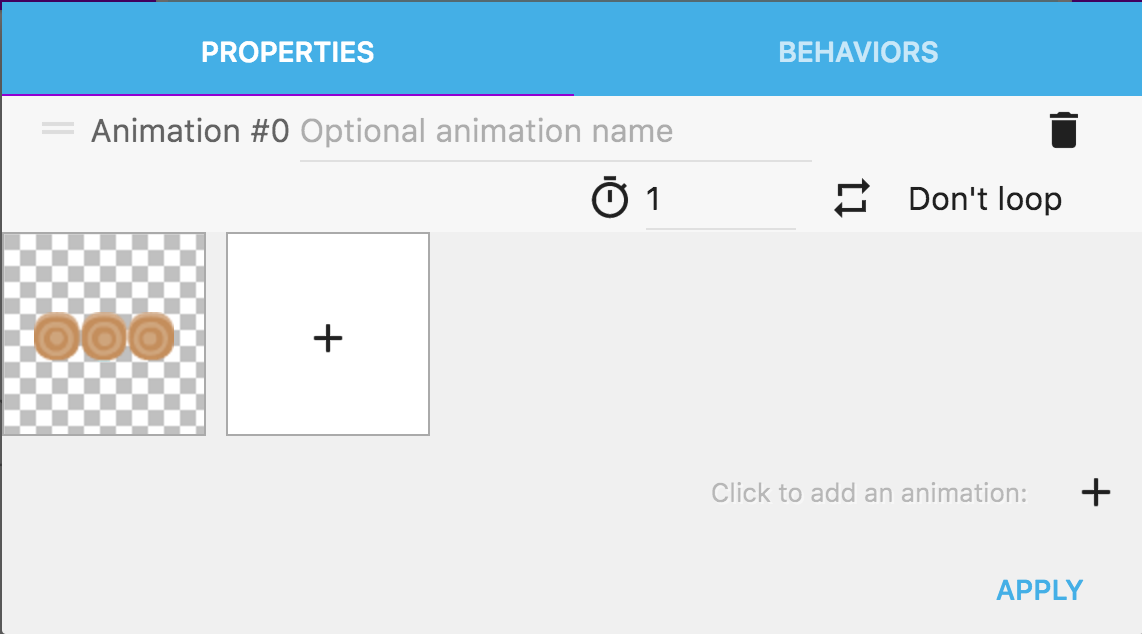 Créez un nouvel objet Sprite, ajoutez une animation et choisissez l'image appelée bridgeLogs :