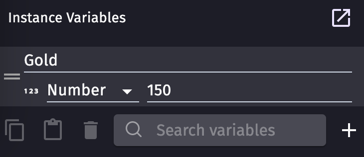 An instance variable is a variable that's specific to an instance of an object. The Instance variables table lets you define the variables attached to the instance and the values of those variables.