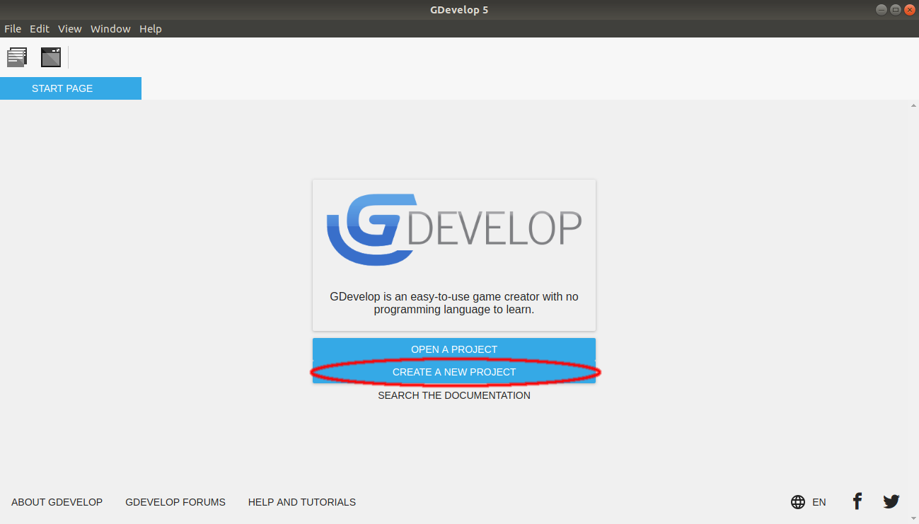 GDevelopをダウンロードした後、インストールが終了するとDevelopを起動できます。