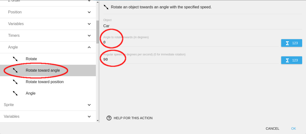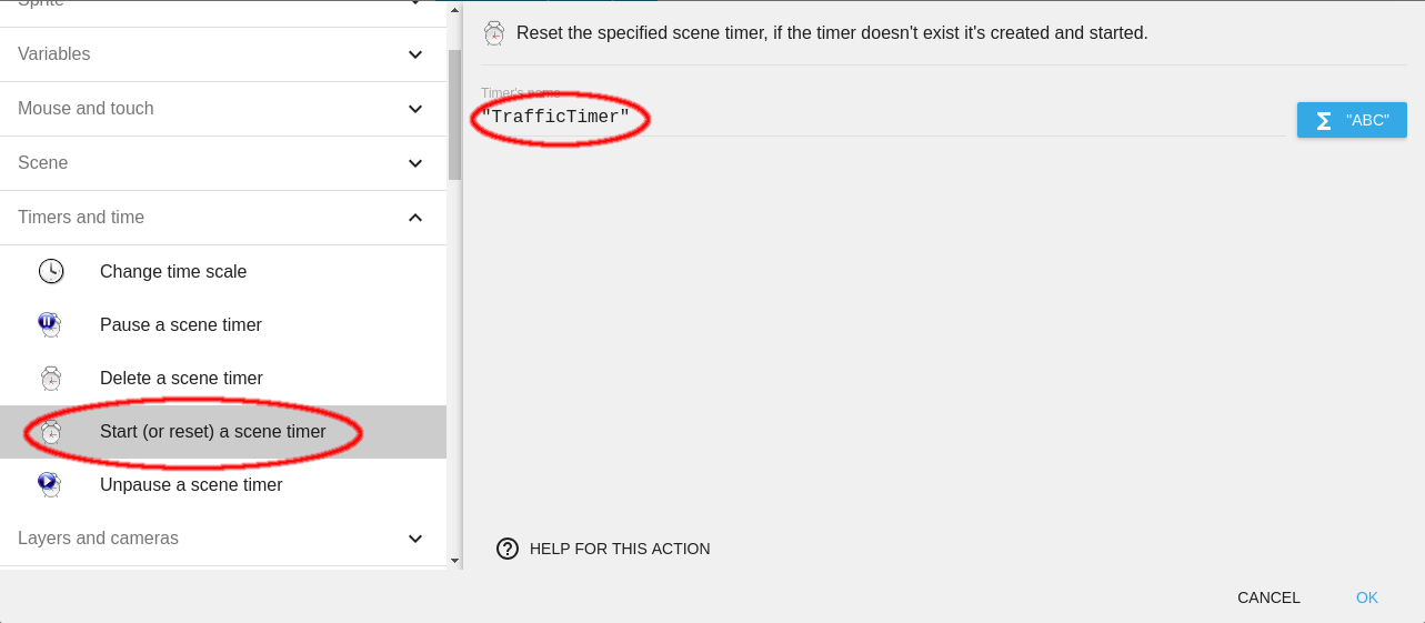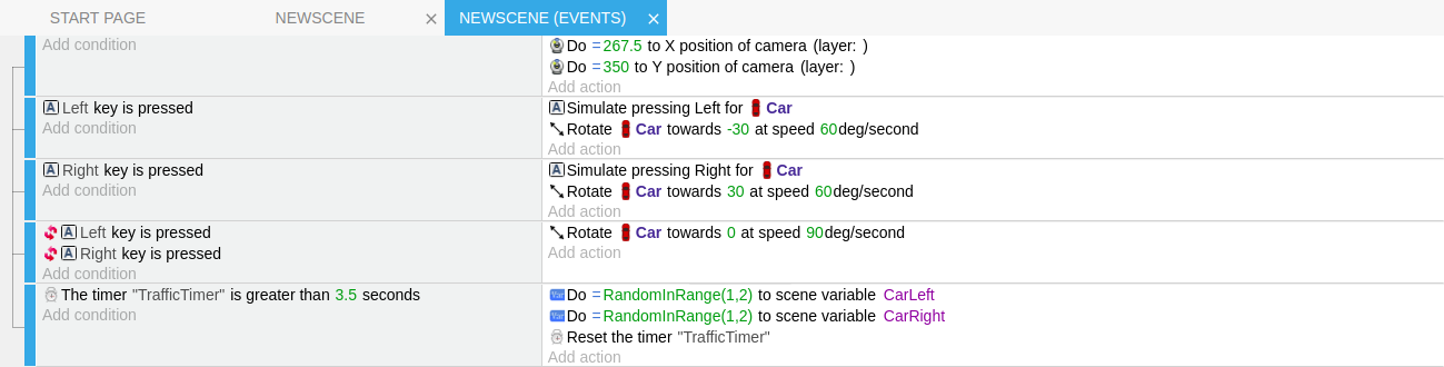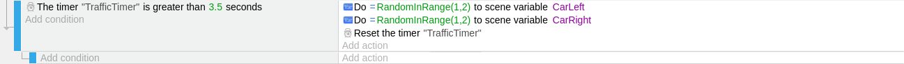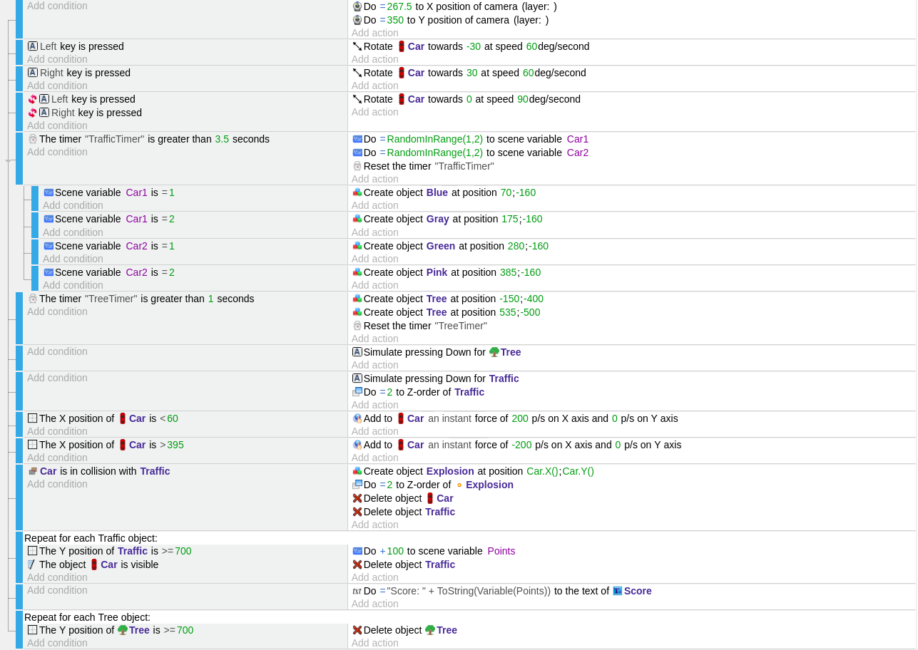 To display the score, we will make an event such that when any object in the group Traffic passes a predefined position, the value of the score is updated. To do this, we need to use the help of a scene variable.