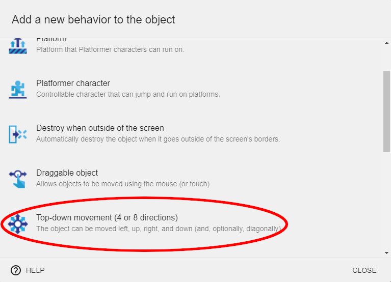 Choose Top-down movement in the Add a new behavior to the object pop-up.