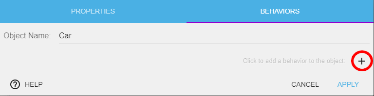 Click on the BEHAVIORS tab at the top of the panel and click on the + button beside Click to add a behavior to the object.