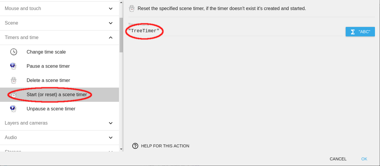 We will use the action Modify the text. Enter Score in the Object field and set the Modification's sign to = (set to).