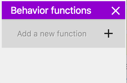 By default, a behavior is empty and does nothing. To add interactivity, you can add a new function (also called "method"). You'll be given the choice between some predefined functions, called lifecycle methods, or a custom function. Lifecycle methods will be called by the game engine automatically at some key moment during the game. Custom functions will be available as conditions or actions (like usual functions).