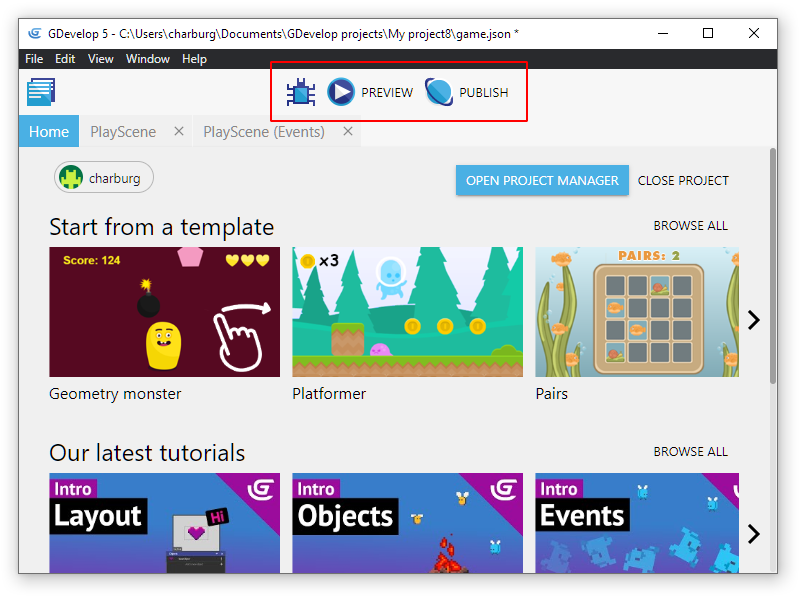 Это руководство объясняет, как начать работу с GDevelop.