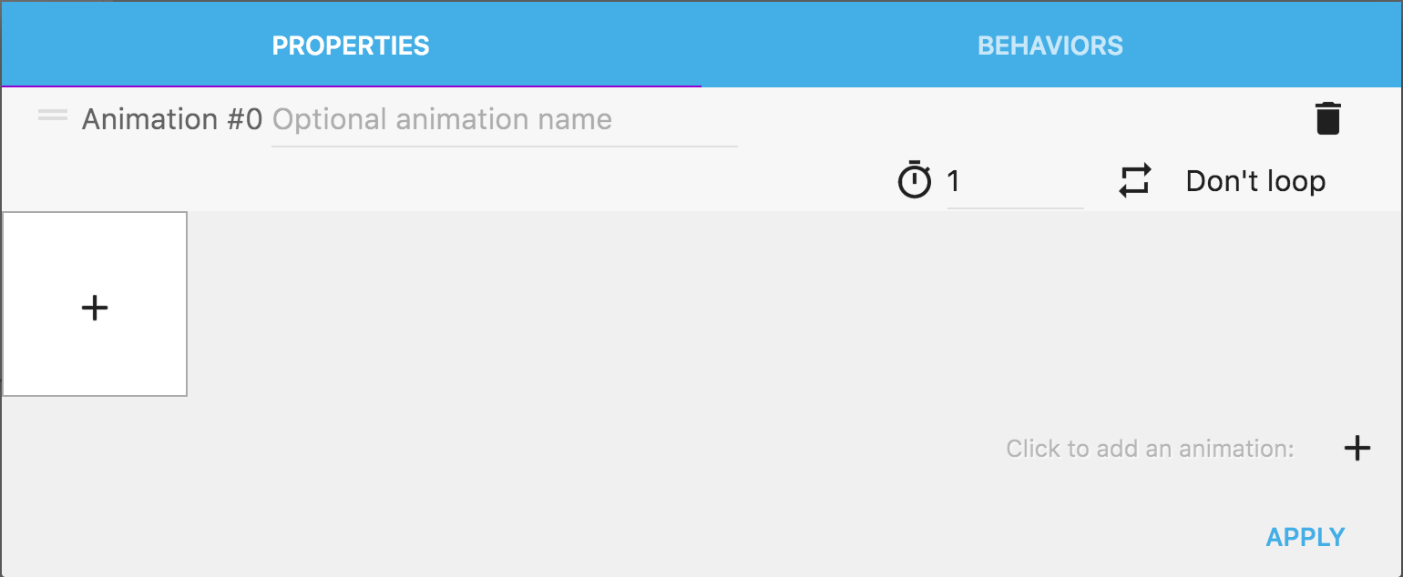 动画已添加,但仍为空,没有图像。若要添加图像,请单击空白缩略图中的“+”。