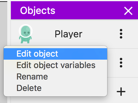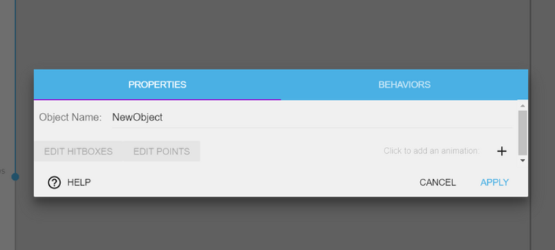 要将GrassPlatform对象设置为平台,请打开GrassPlatform对象编辑器。切换到“行为”选项卡,然后添加行为:这次,选择“平台”行为。
